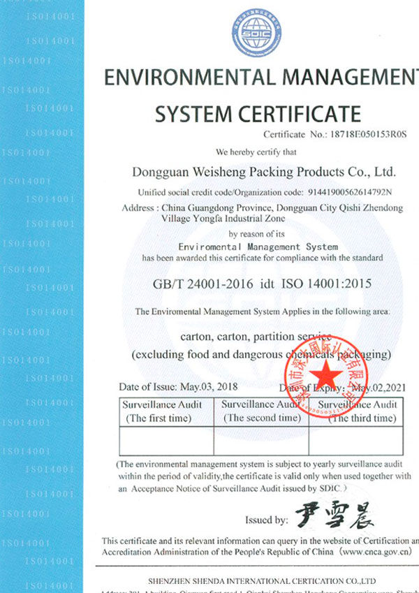 东莞市伟盛包装制品有限公司成立于2010年,已通过ISO9001质量体系和ISO14001环境体系认证,公司占地面积5000平方米,十几年的发展,公司一直致力于纸箱、纸盒、啤盒、彩盒、飞机盒等纸制品,广泛应用于电子,家私、工艺品、灯饰、五金、塑胶等产品的包装上,欢迎新老客户致电垂询。